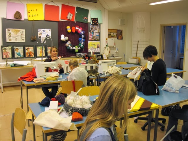 • bruna skåpet, lärarbordet, tillklippningsbordet och resttygslådorna flyttades till lilla rummet